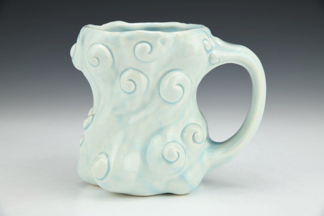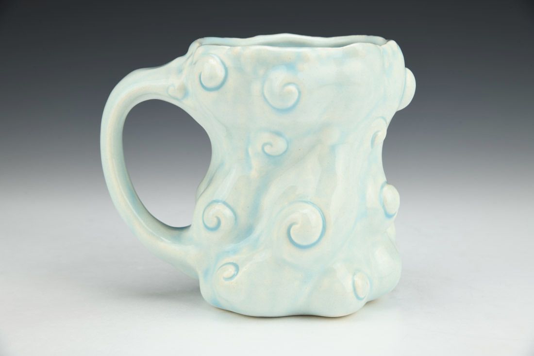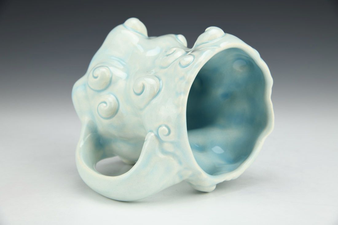 Porcelain, slipcast, glaze, cone 6 electric fired, 4.75 x 6 x 4.25 inches.
