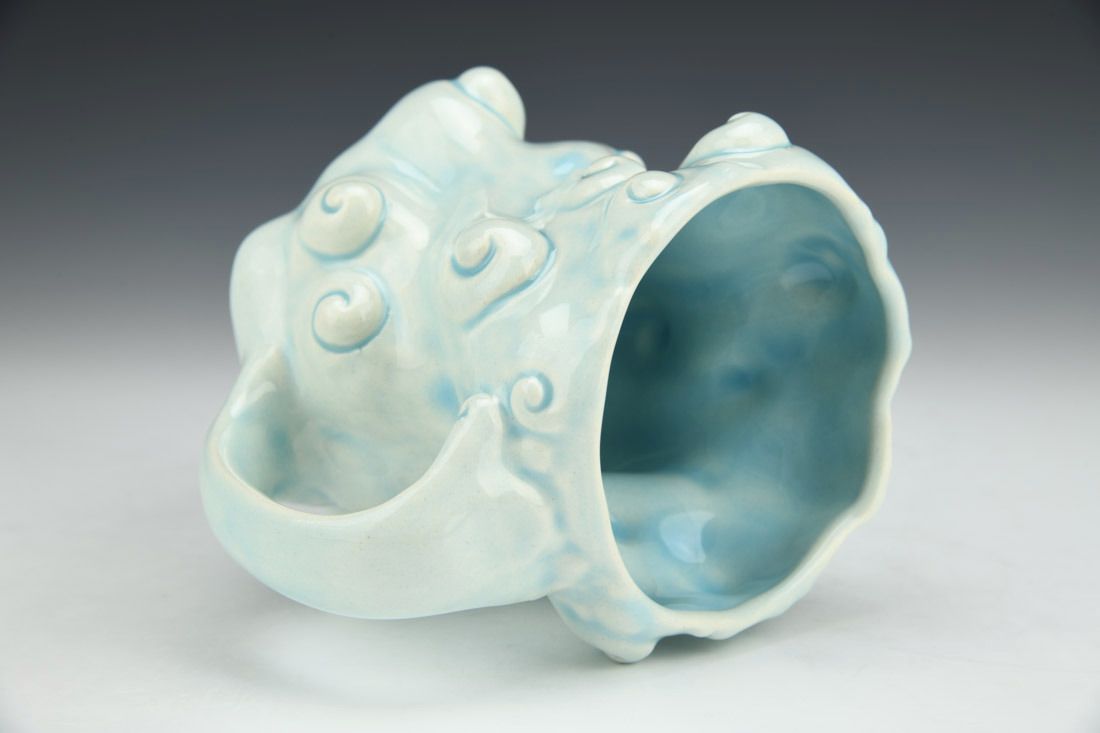 Porcelain, slipcast, glaze, cone 6 electric fired, 4.75 x 6 x 4.25 inches.