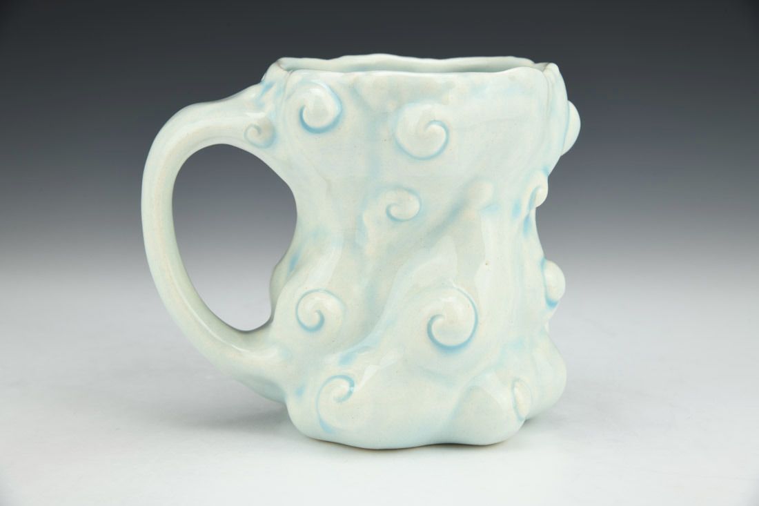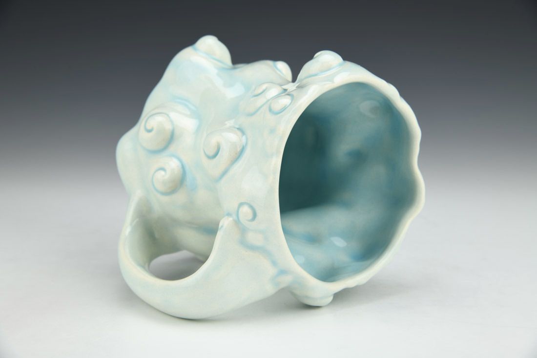 Porcelain, slipcast, glaze, cone 6 electric fired, 4.75 x 6 x 4.25 inches.