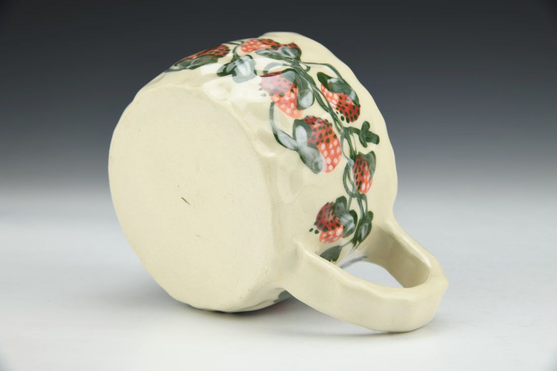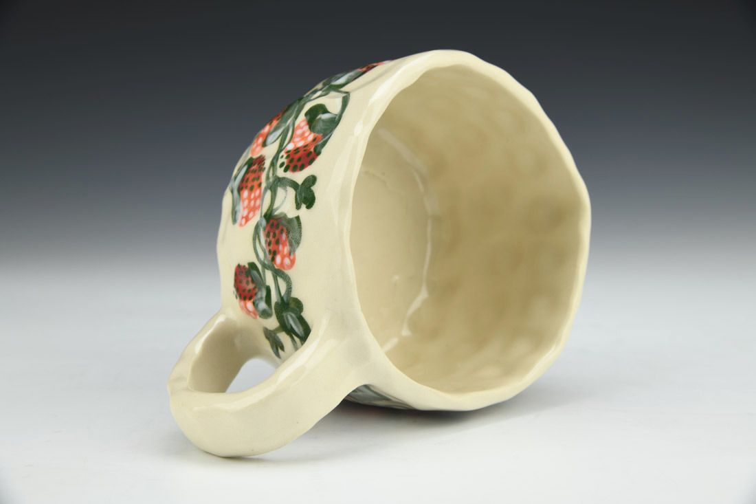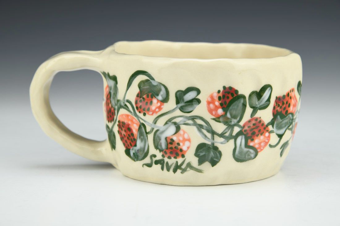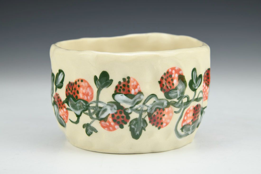 Stoneware, hand built with slabs and pinched, hand painted, cone 5 electric fired, 2.5 x 5.5 x 4 inches.