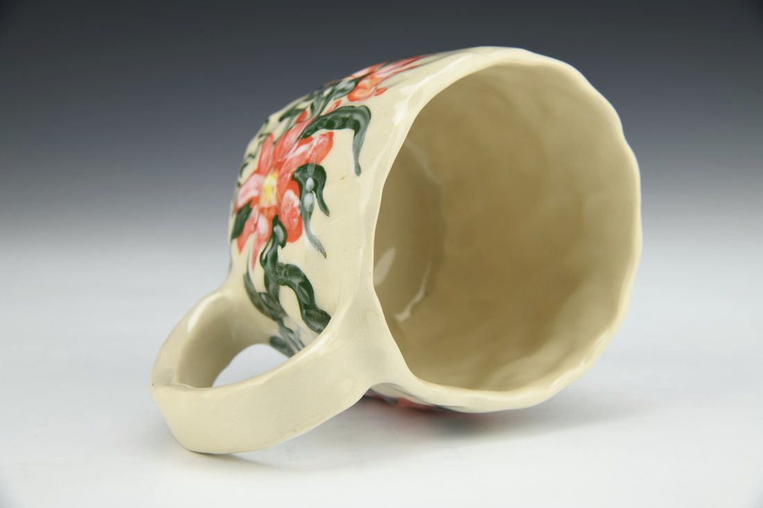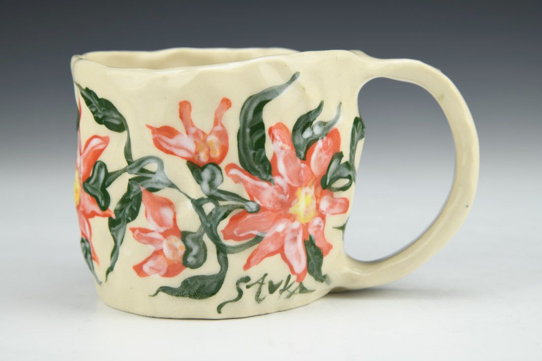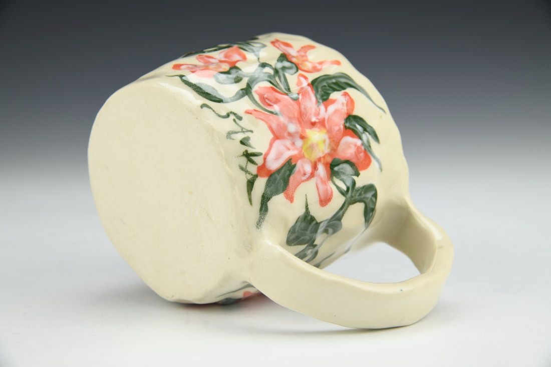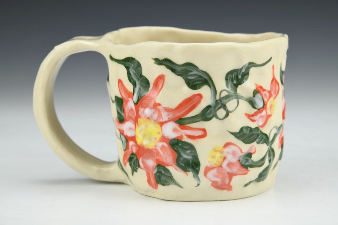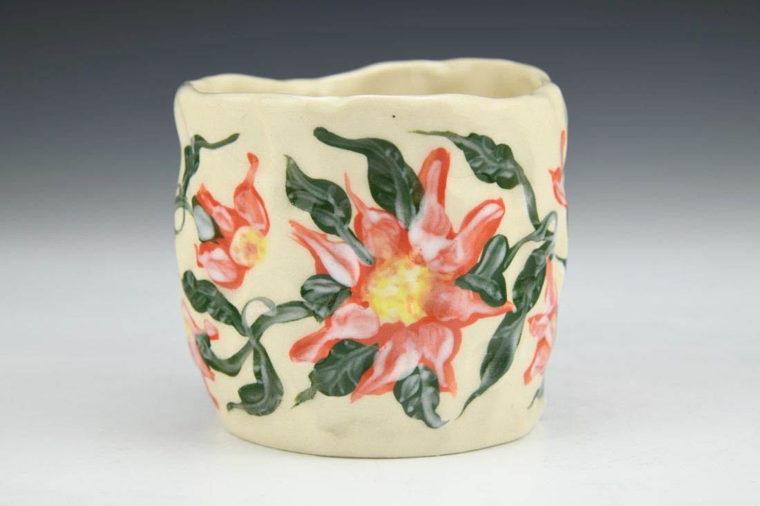 Stoneware, hand built with slabs and pinched, hand painted, cone 5 electric fired, 3 x 5 x 3.5 inches.
