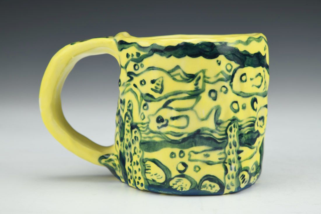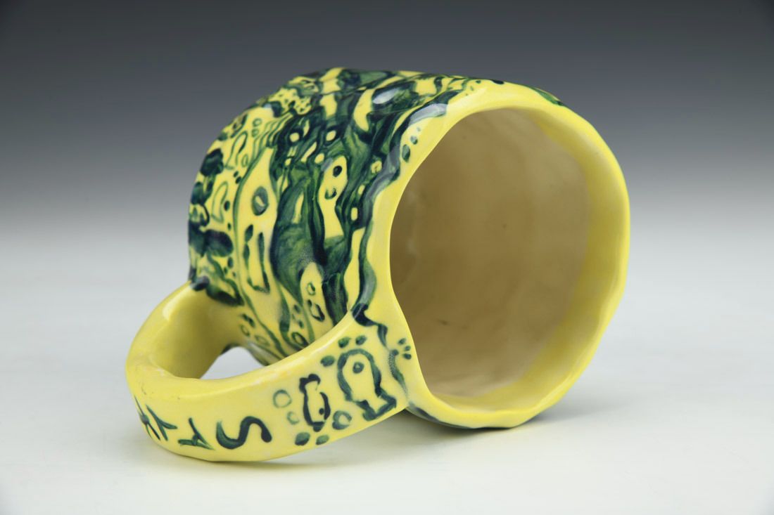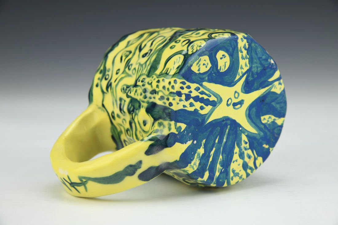 Stoneware, hand built with slabs and pinched, hand painted, cone 5 electric fired, 3 x 5 x 3 inches.