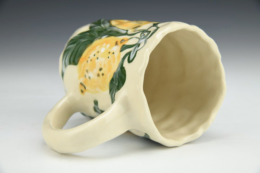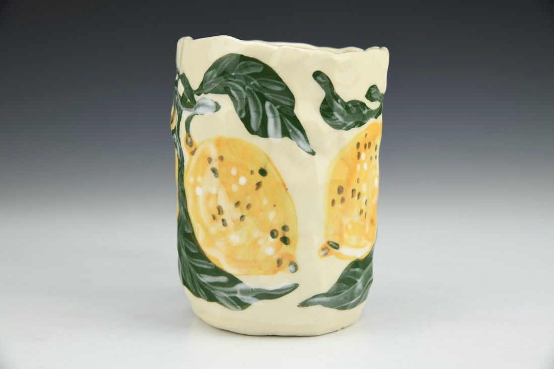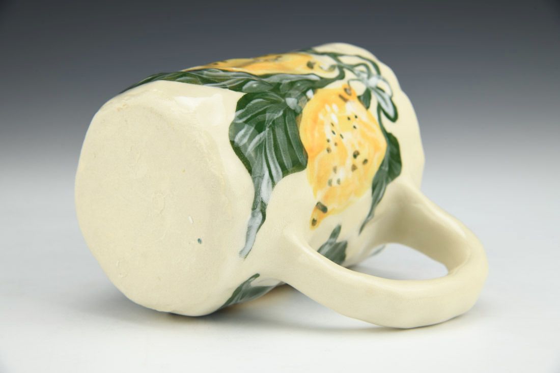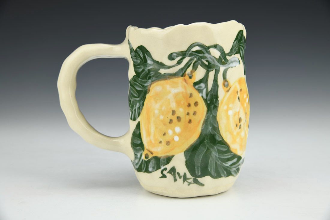 Stoneware, hand built with coils and pinched, hand painted, cone 5 electric fired, 4.5 x 5 x 3.5 inches.