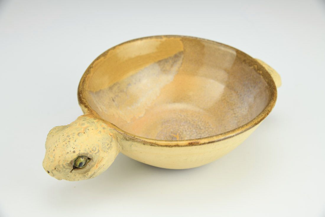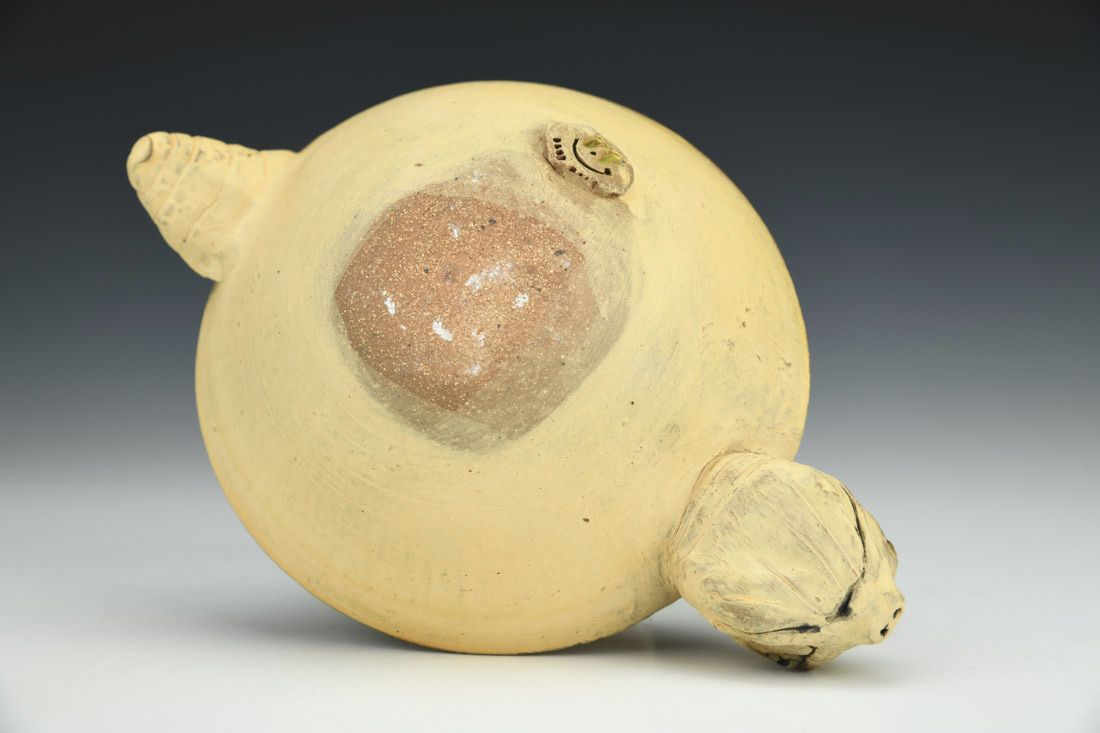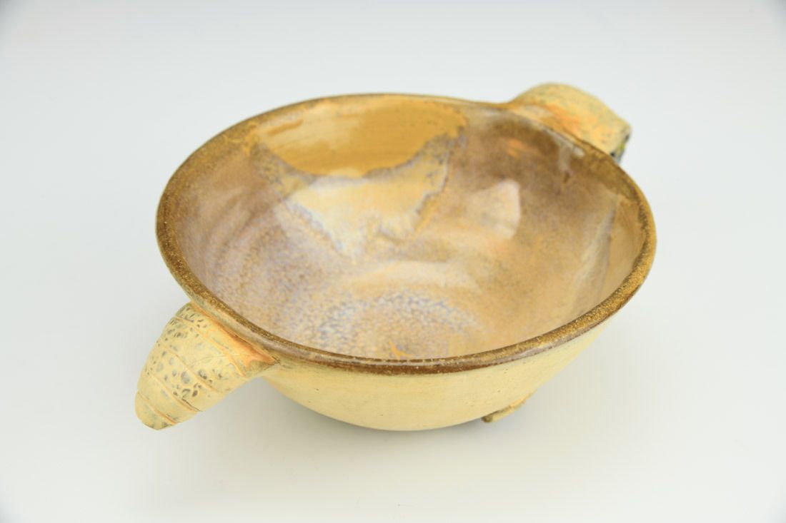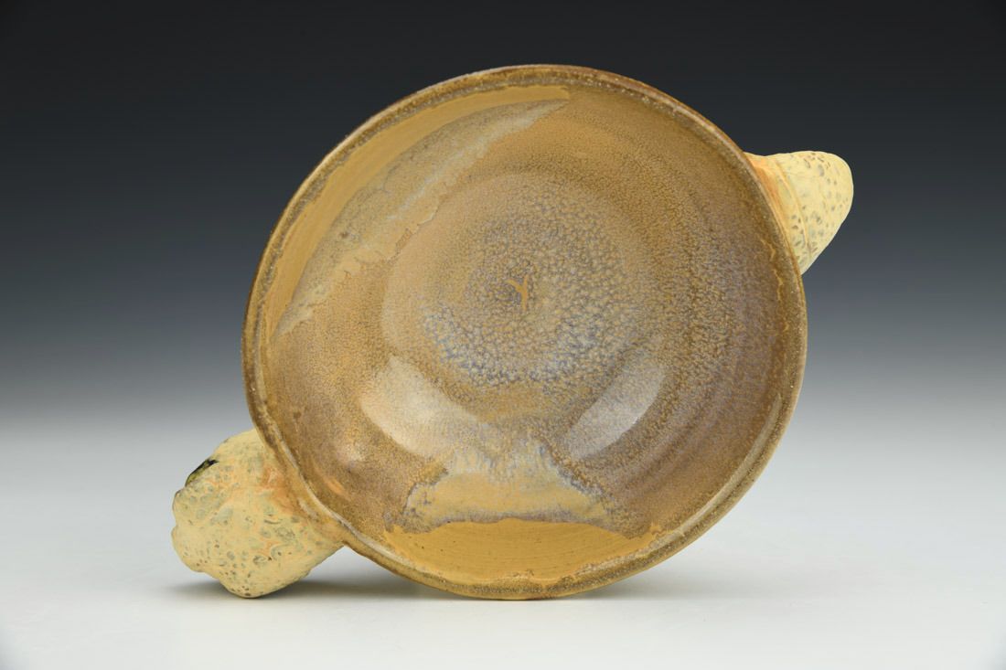 Stoneware, wheel thrown and hand built, cone 6 oxidation fired, 2 x 5 x 7.5 inches.
