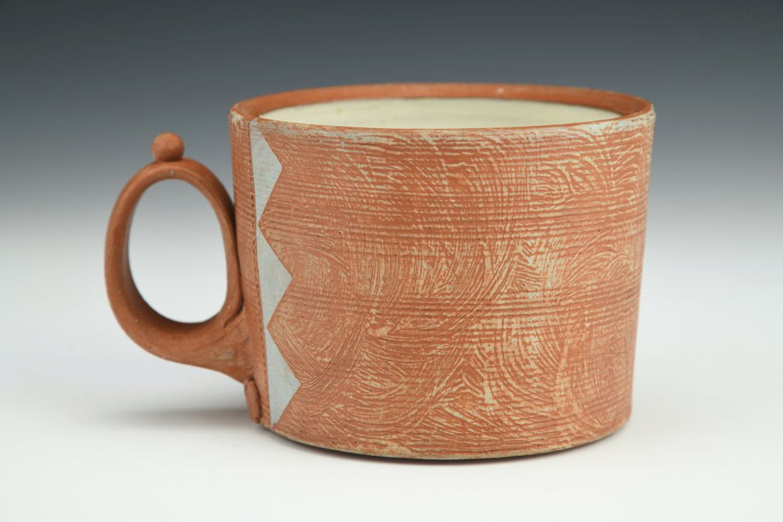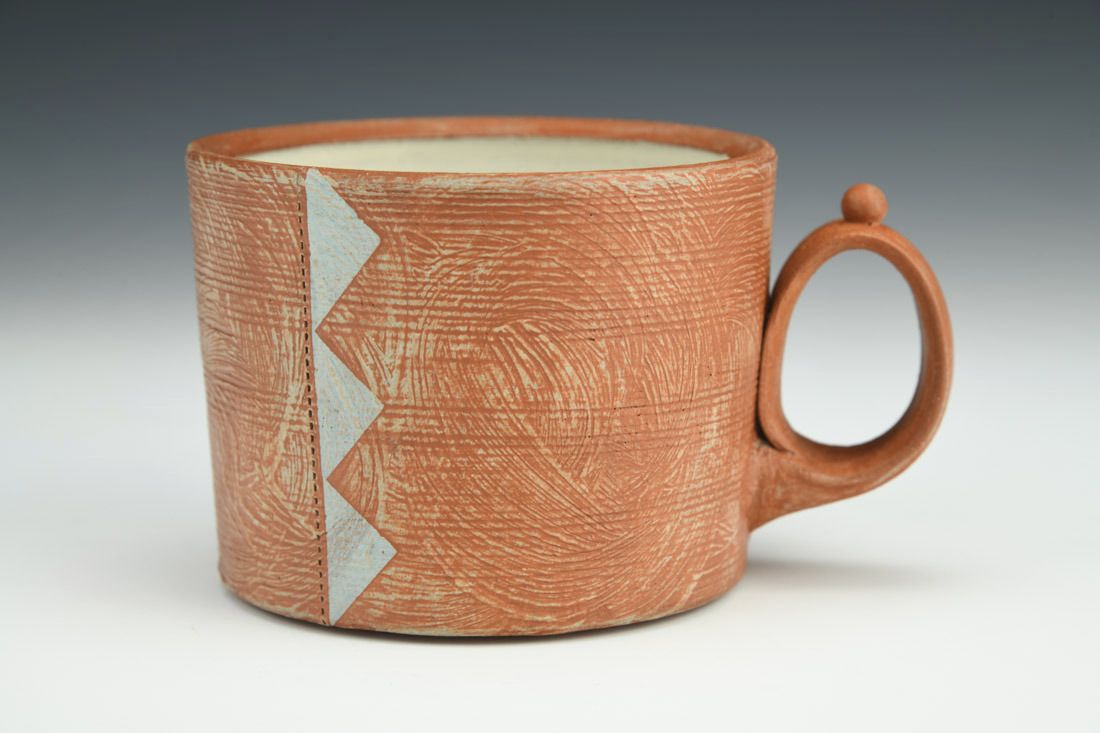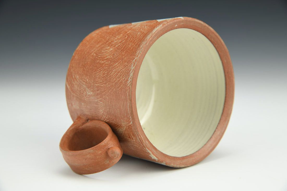 Earthenware, wheel thrown, terra sigillata, cone 3 electric fired, 2.75 x 5 x 3.75 inches.
