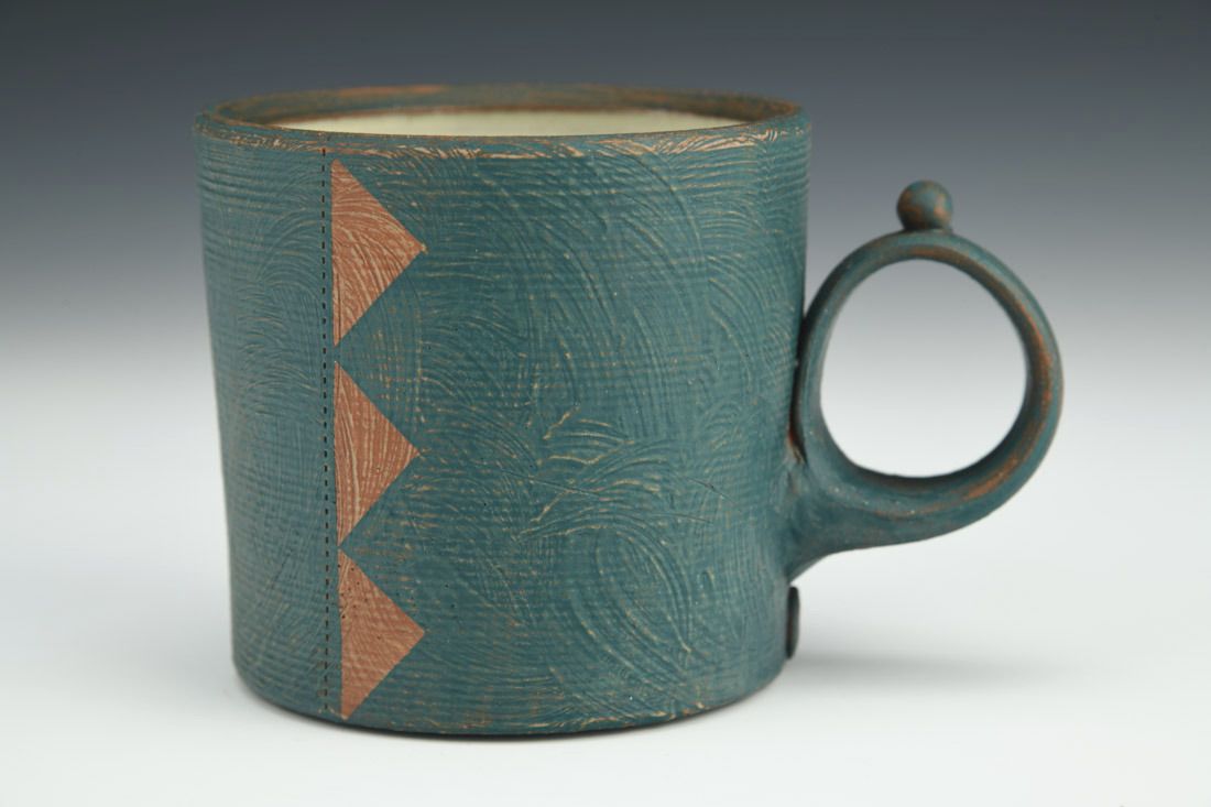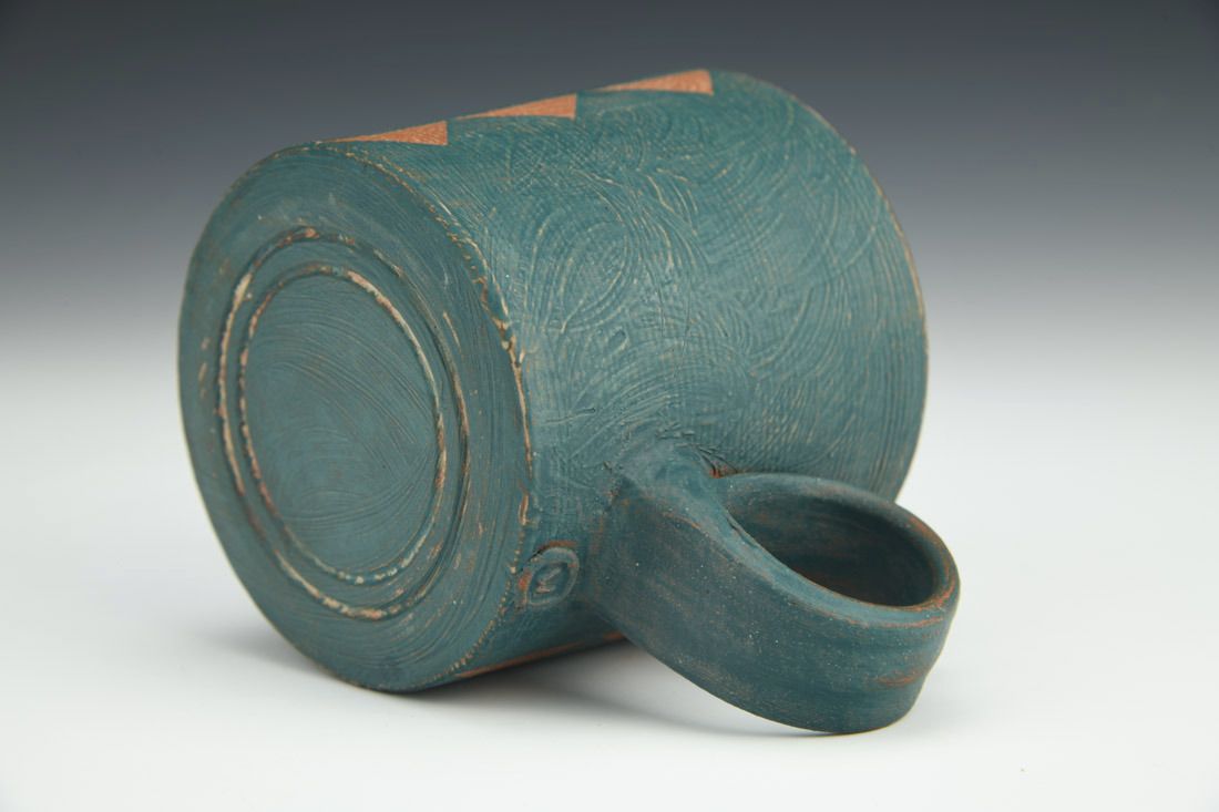 Earthenware, wheel thrown, terra sigillata, cone 3 electric fired, 3.25 x 5 x 3.5 inches.