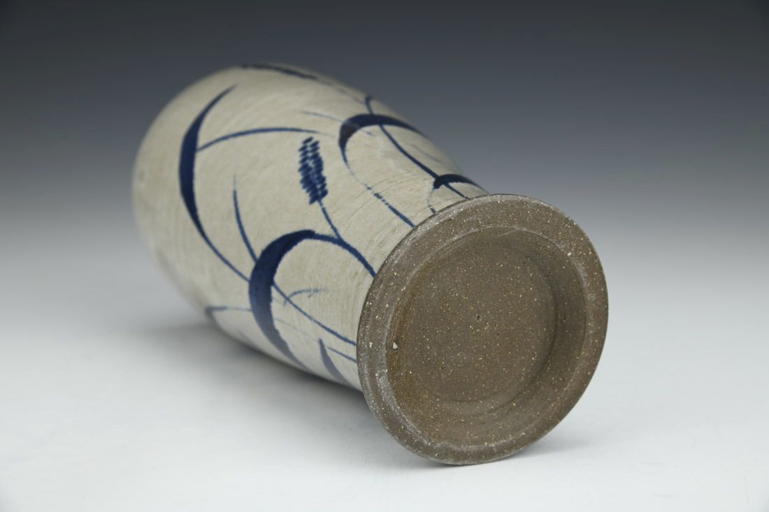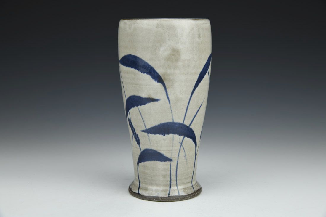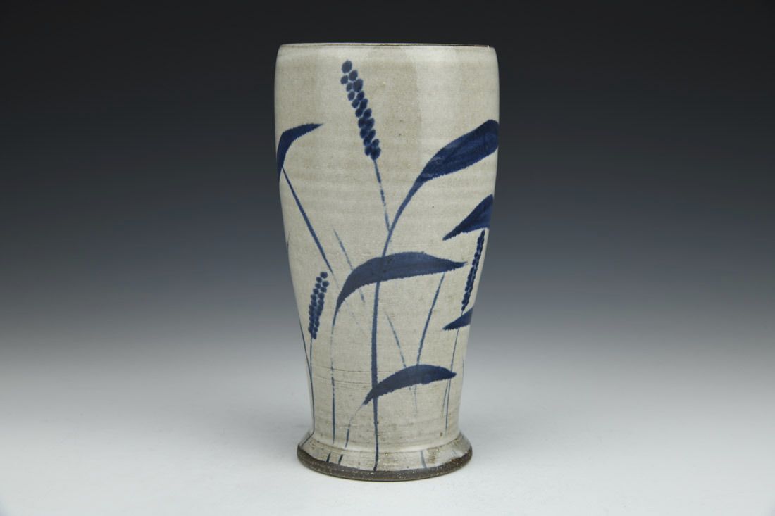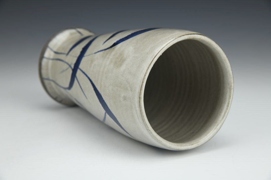 Dark stoneware, wheel thrown, oxide stain, glossy gray glaze, cone 6 electric fired, 6.5 x 3.25 x 3.25 inches.