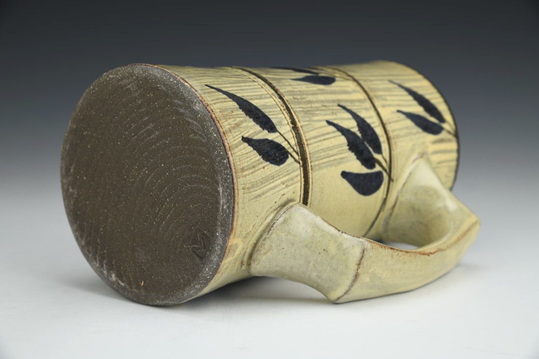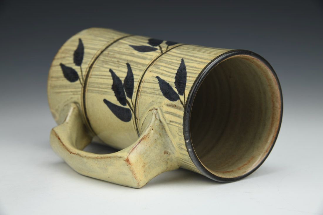 Dark stoneware, wheel thrown, oxide stain, matte ecru glaze, cone 6 electric fired, 6.5 x 5.25 x 3.75 inches.