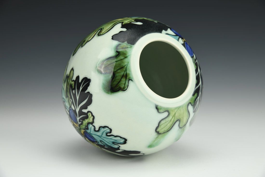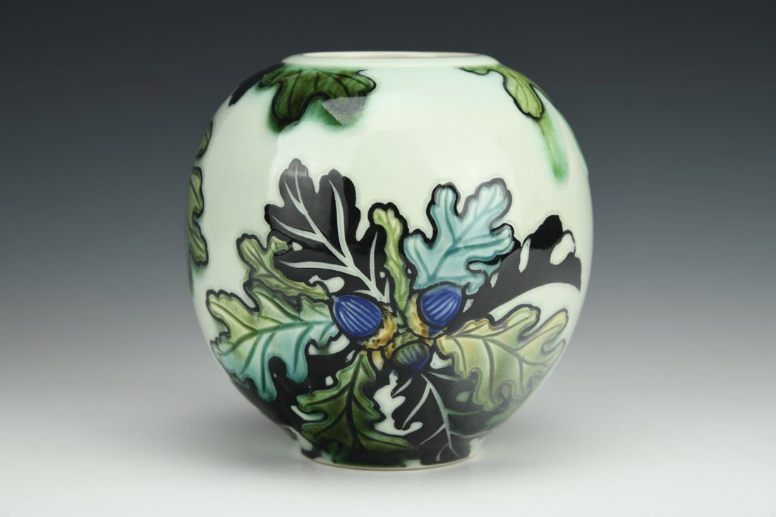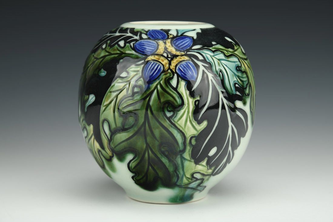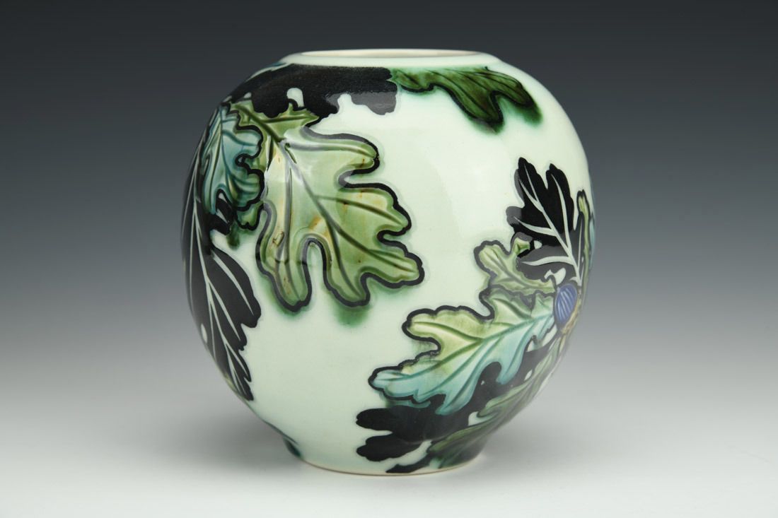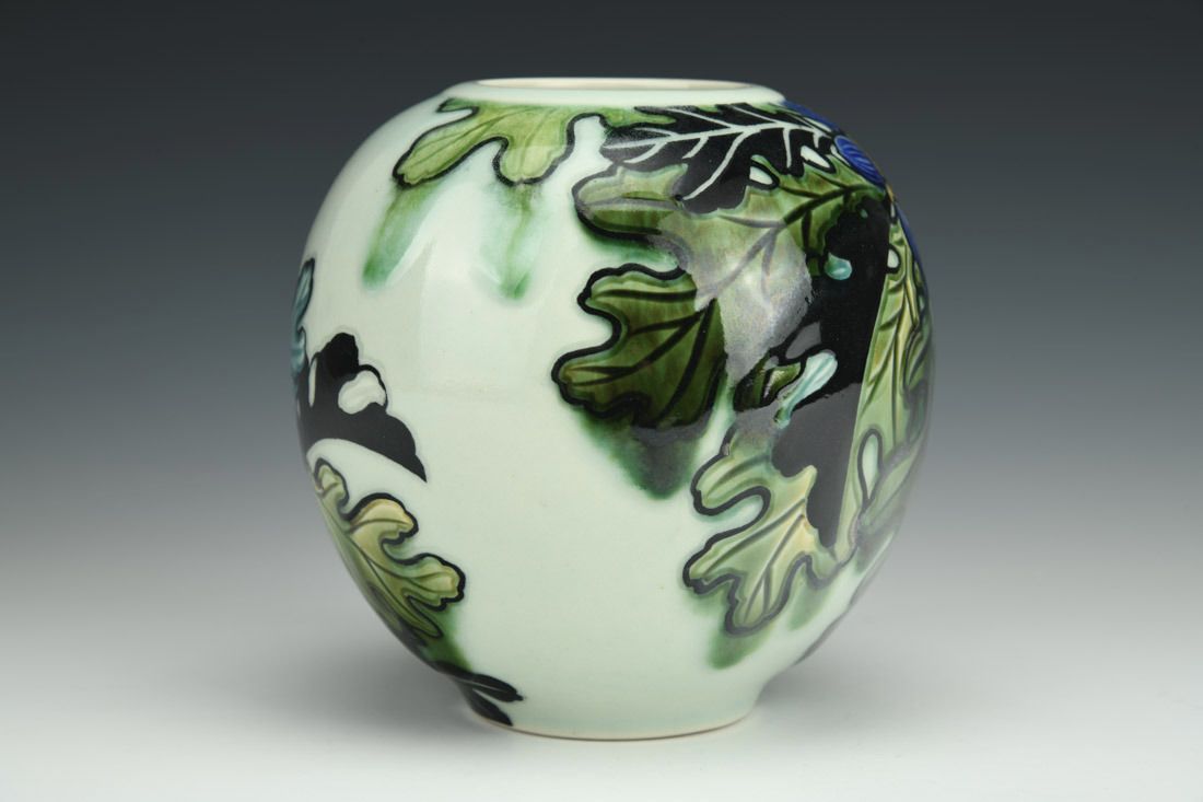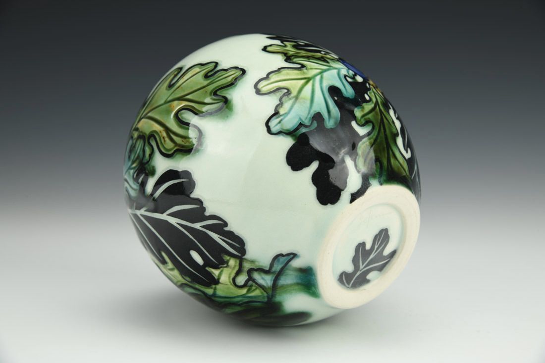 Mid-range porcelain, wheel thrown, carved, sgraffito, painted glaze, cone 5 electric fired, 4.75 x 4.25 x 4.25 Inches