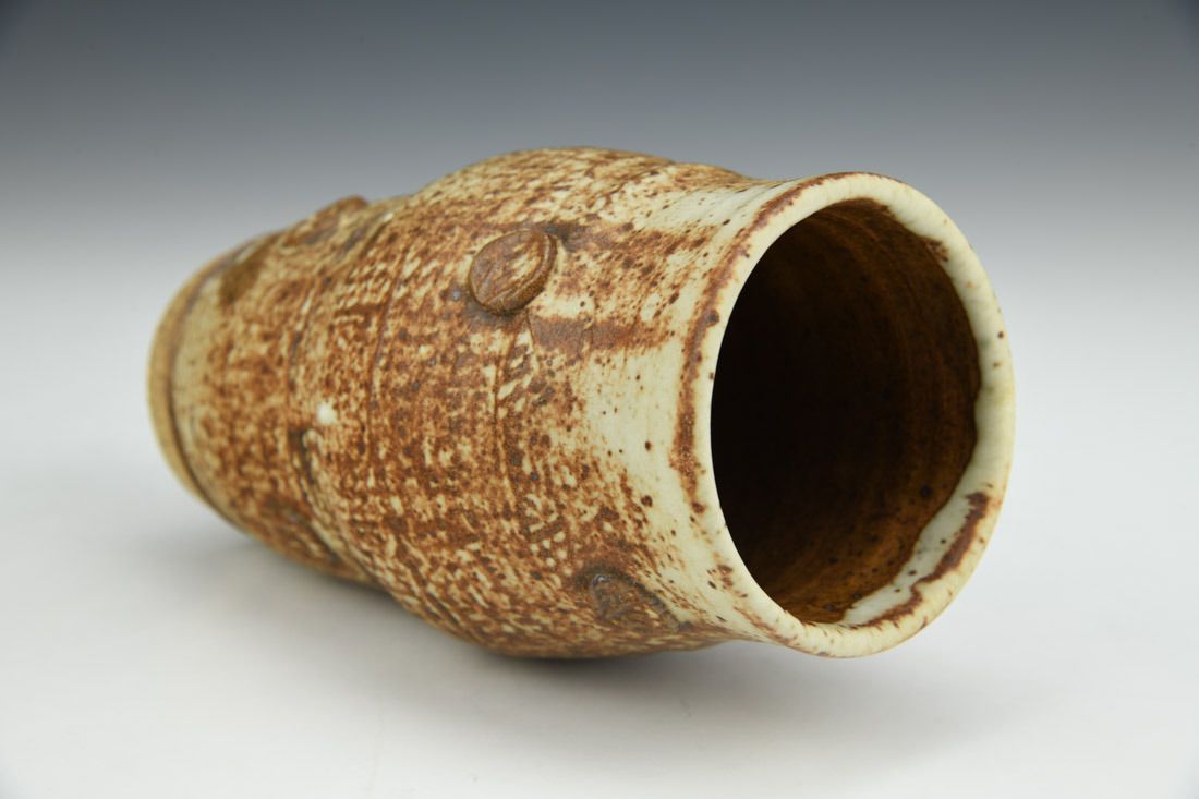 Stoneware, wheel thrown, cone 10 reduction fired, 6 x 3.5 x 3.5 inches.
